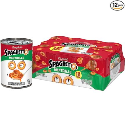 Ingredients: Water, Tomato Puree (Water, Tomato Paste), Meatballs Made With Chicken And Beef (Chicken, Water, Beef, Bread Crumbs [Enriched Flour (Wheat Flour, Niacin, Ferrous Sulfate, Thiamine Mononitrate, Riboflavin, Folic Acid), Dextrose, Salt, Yeast, Soybean Oil], Mechanically Separated Chicken, Soy Protein Concentrate, Salt, Onion Powder, Dehydrated Garlic, Natural Flavoring), Enriched Pasta (Wheat Flour, Niacin, Ferrous Sulfate, Thiamine Mononitrate, Riboflavin, Folic Acid), High Fructose Corn Syrup, Contains Less Than 2% Of: Salt, Enzyme Modified Cheddar Cheese (Cheddar Cheese [Cultured Milk, Salt, Enzymes, Calcium Chloride], Water, Disodium Phosphate, Enzymes), Vegetable Oil, Citric Acid, Yeast Extract, Enzyme Modified Butter, Natural Flavoring, Nonfat Milk, Sodium Phosphate. Contains: Wheat, Milk, Soy.
