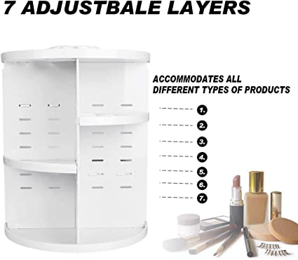 • 怐7 Adjustable Levels] With the 7 adjustable levels of 360 Degree make up organiser, you can adjust the height of the shelves to suit cosmetics and containers in different shapes and sizes.