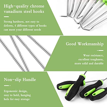 • 怐Professional Pick And Hook Set怑: A professional pick and hook set is essential for a busy garage and car repair shop. This set of tools with high strength and fine workmanship can help easily hook and pick any components and parts in repair work! It is a good helper for you!
