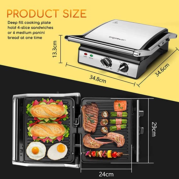• 怐Large Cooking Surface怑This large deep fill cooking plate hold 4-slice sandwiches or 6 medium panini bread at one time which can meet all needs of your families. Suitable for meats, vegetables, breads (toasties and panini sandwiches), skewers and so much more.