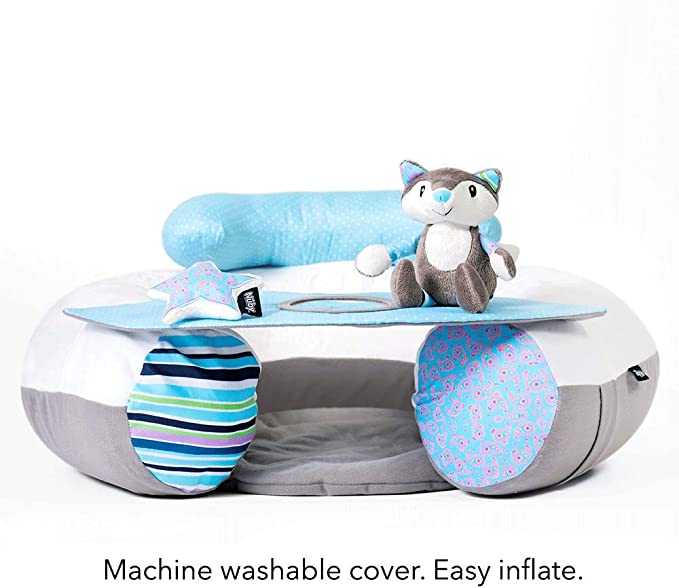 • Note: The nature of this product ( inflatable tube) will always means that the product will slightly deflate over night and may need to additional air overnight.. specially if the room temperature has changed. SIT ME UP BABY SEAT – Nuby’s super comfy, inflatable seat will help teach your baby to sit upright as well as keeping them safely cushioned with the padded arms and head rest.