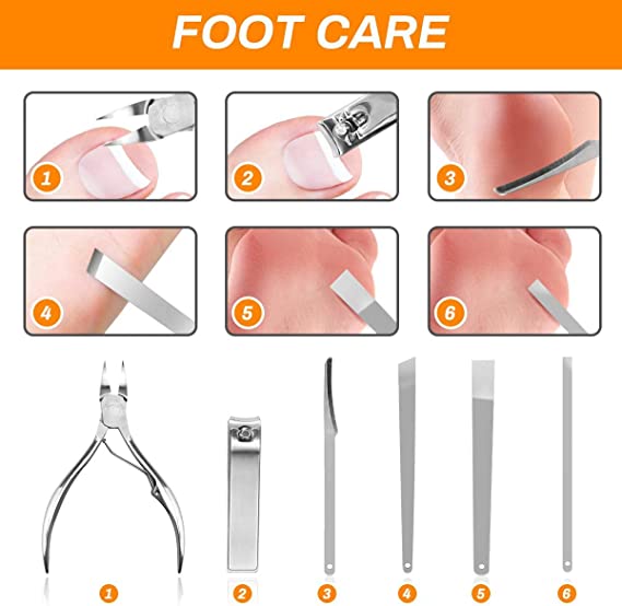 • 怐Ergonomic Design怑Nail scissors, pedicure tools, ear pickers, eyebrow tweezers, eyebrow razors are all with ergonomically designed, the handles are non-slip, and the product fits the human body more safely. Keep a good nail care habit that put all tools back into case and in a dry environment when not in use.